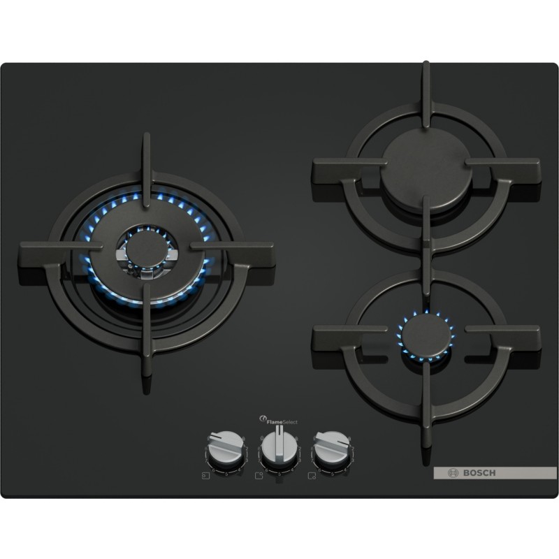 Die Gaskochplatte Bosch PPC6A6I10 setzt auf Präzision und integriertes Design. Ihr flaches Profil und die glatte Oberfläche machen sie zu einer dezenten, aber äußerst funktionalen Wahl für moderne Küchen.