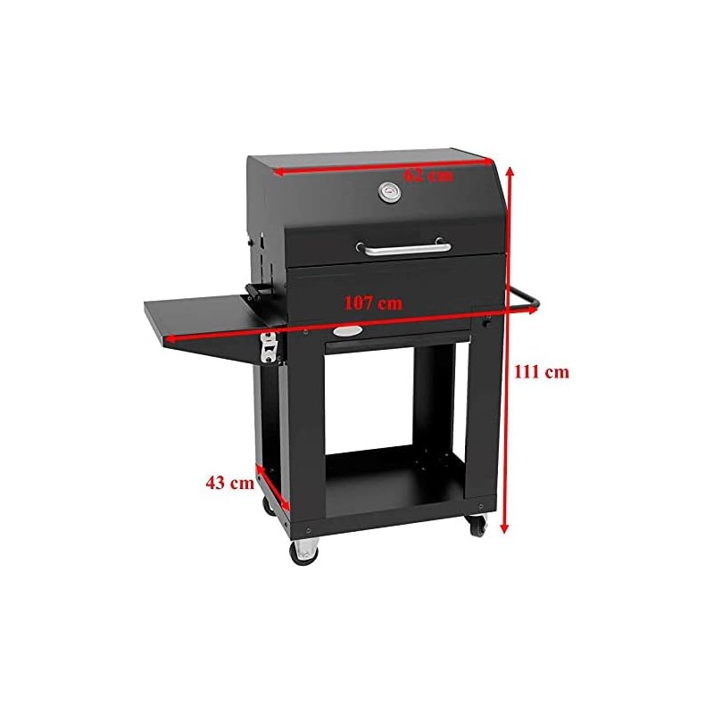 La barbacoa de carbón Miranda destaca por su carro práctico y diseño robusto.
